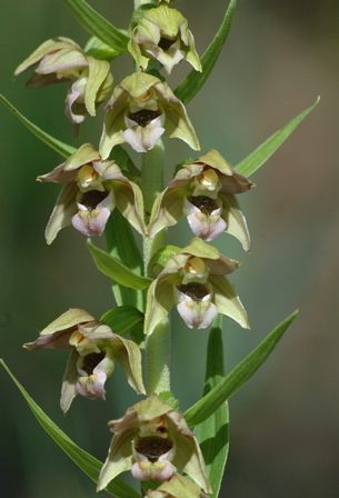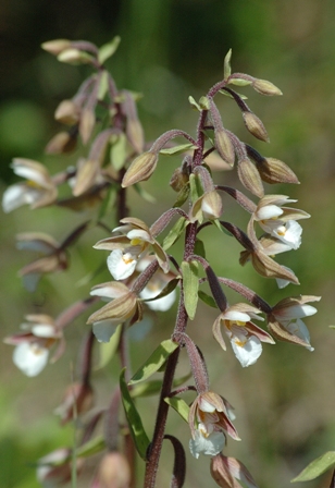 Erst ab Mitte Juli steht die Breitblättrige Stendelwurz (Epipactis helleborine) in voller Blüte. Sie zählt bundesweit zu den häufigsten Orchideen und ist auch im NSG "Dammer Bergsee" zahlenmäßig am stärksten von allen Orchideen vertreten. Die Breitblättrige Stendelwurz zählt zu den Orchideen mit der größten Varianzbreite in ihrem Erscheinungsbild. Die Blütenfarbe kann von grünlichgelb bis hin zu dunkelbraunrot reichen. Mal gibt es einzeln stehende Exemplare, anderswo werden Horst ausgebildet. Aber immer handelt es sich um die eine Art.