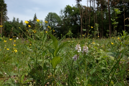 Eine Pflanzengruppe, die die Botaniker und auch viele Naturbegeisterte besonders in ihren Bann zieht, sind die Orchideen. Von dieser, in jeder Hinsicht, besonderen Gruppe, kommen 5 verschiedene Arten vor: Breitblättriges Knabenkraut, Fuchs-Knabenkraut, Großes Zweiblatt, Echte Sumpfwurz und Breitblättrige Stendelwurz. Letztere kommt auch mit einer kleinwüchsigen Unterart im Gebiet vor. Nachfolgend sollen diese Orchideen etwas genauer vorgestellt werden. Dabei folge ich dem zeitlichen Ablauf des Jahres, wie diese Arten erblühen.